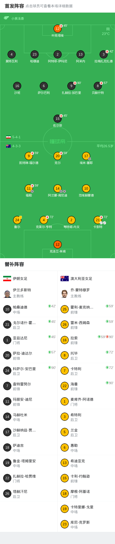 北京时间3月5日女足亚洲杯 小组赛 第2轮,伊朗女足对阵澳大利亚女足。澳大利亚女足埃米-塞耶破门,福勒破门,阿兰娜-肯尼迪梅开二度。最终比分伊朗女足 0-4 澳大利亚女足。